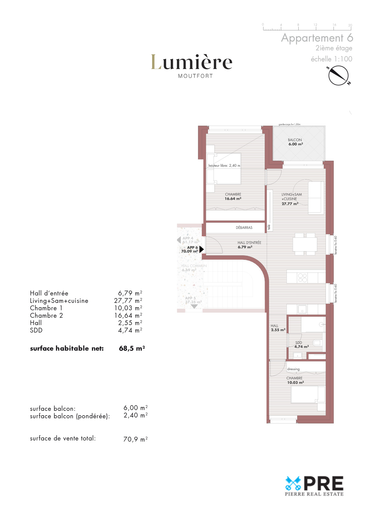 L’appartement se compose d’un hall d’entrée avec un débarras un débarras, idéal pour ranger ses vêtements d’extérieurs.